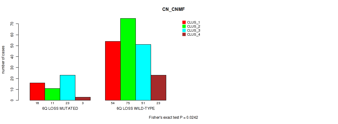 6q loss cnv correlated to 'CN_CNMF' and 'METHLYATION_CNMF'.