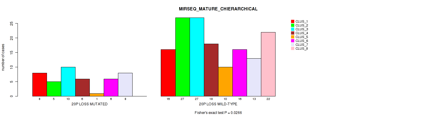 20p loss cnv correlated to 'CN_CNMF', 'METHLYATION_CNMF', 'MRNASEQ_CNMF', 'MIRSEQ_CHIERARCHICAL', and 'MIRSEQ_MATURE_CHIERARCHICAL'.