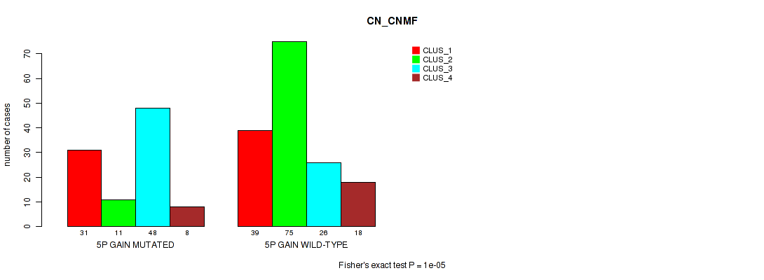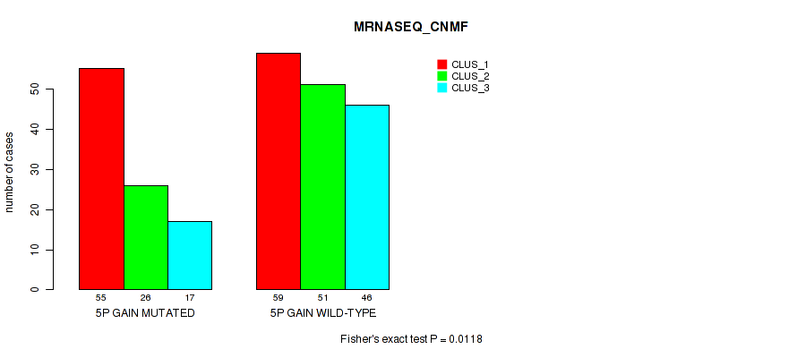 5p gain cnv correlated to 'CN_CNMF', 'METHLYATION_CNMF', 'RPPA_CHIERARCHICAL', 'MRNASEQ_CNMF', 'MRNASEQ_CHIERARCHICAL', and 'MIRSEQ_CHIERARCHICAL'.