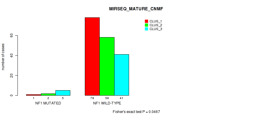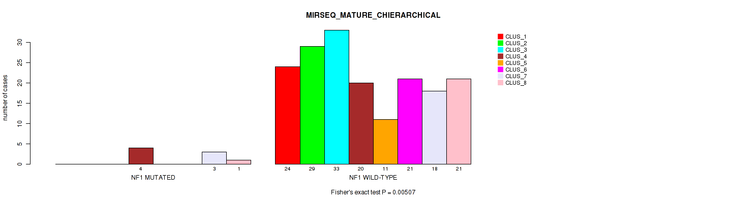 Figure S30. Get High-res Image Gene #20: 'NF1 MUTATION STATUS' versus Molecular Subtype #10: 'MIRSEQ_MATURE_CHIERARCHICAL'