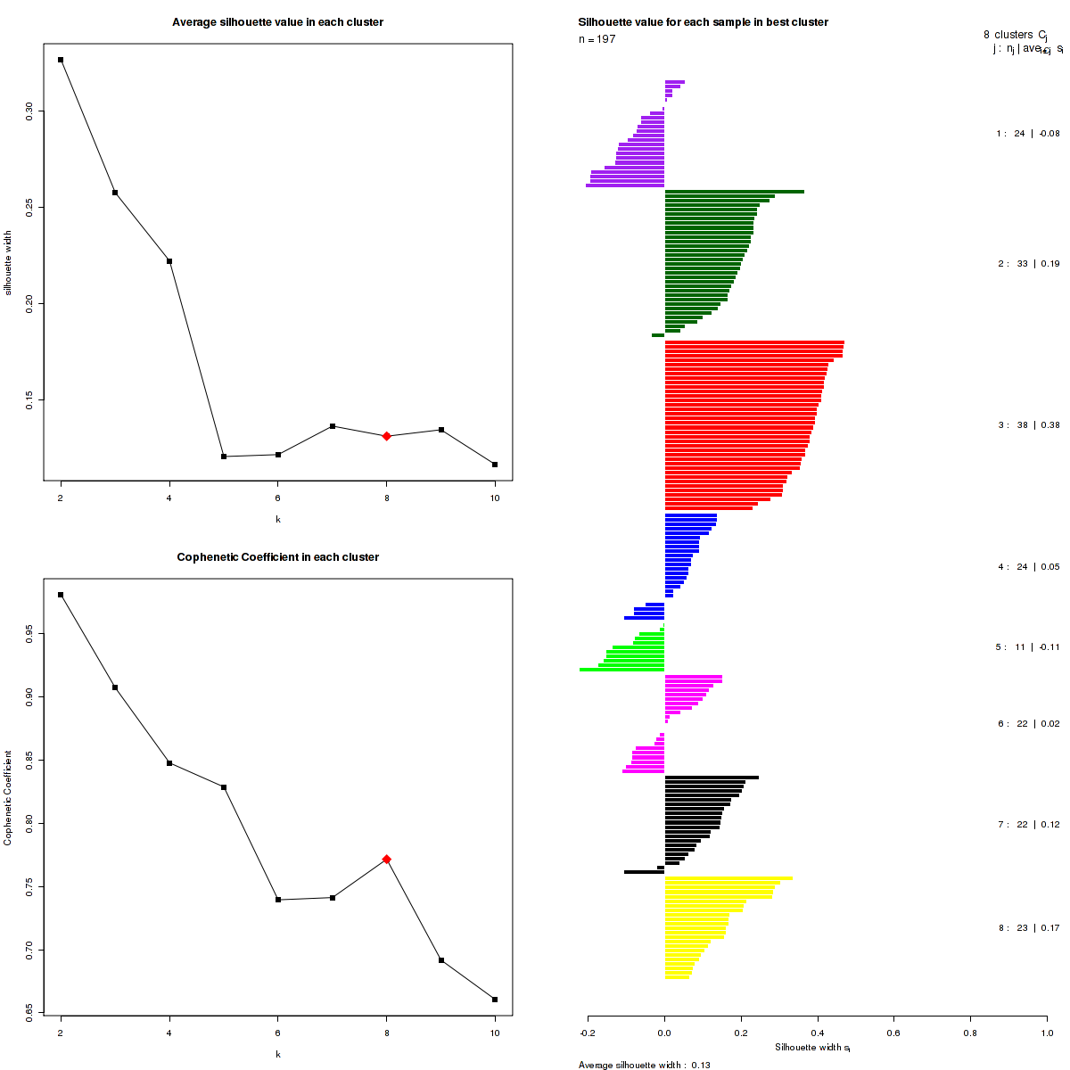Table 1. Get Full Table List of samples with 8 subtypes and silhouette width.