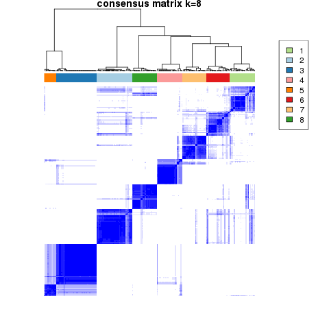 Figure 4. Get High-res Image The consensus matrix after clustering shows 8 clusters with limited overlap between clusters.