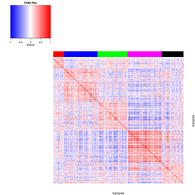 Figure 3. Get High-res Image The consensus matrix after clustering shows 5 clusters with limited overlap between clusters.