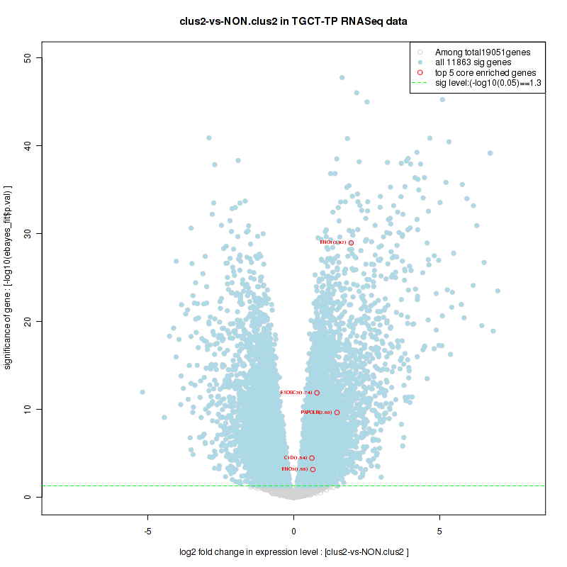 Figure S58.  Get High-res Image For the top 5 core enriched genes in the pathway: KEGG DRUG METABOLISM OTHER ENZYMES, this volcano plot shows how much they are up/down-regulated and significant. The significance was calculated by empirical bayesian fit