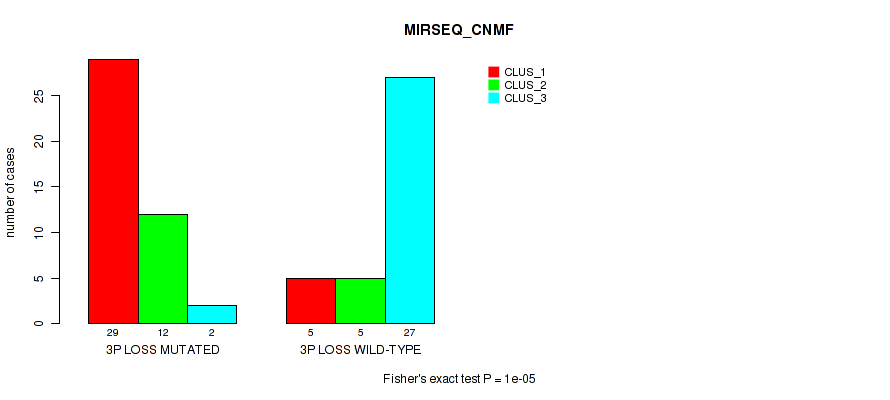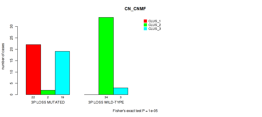 3p loss cnv correlated to 'CN_CNMF', 'METHLYATION_CNMF', 'MRNASEQ_CNMF', 'MRNASEQ_CHIERARCHICAL', 'MIRSEQ_CNMF', 'MIRSEQ_CHIERARCHICAL', 'MIRSEQ_MATURE_CNMF', and 'MIRSEQ_MATURE_CHIERARCHICAL'.
