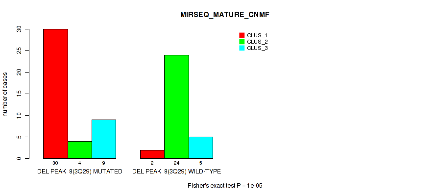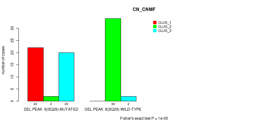 del_3q29 cnv correlated to 'CN_CNMF', 'METHLYATION_CNMF', 'MRNASEQ_CNMF', 'MRNASEQ_CHIERARCHICAL', 'MIRSEQ_CNMF', 'MIRSEQ_CHIERARCHICAL', 'MIRSEQ_MATURE_CNMF', and 'MIRSEQ_MATURE_CHIERARCHICAL'.