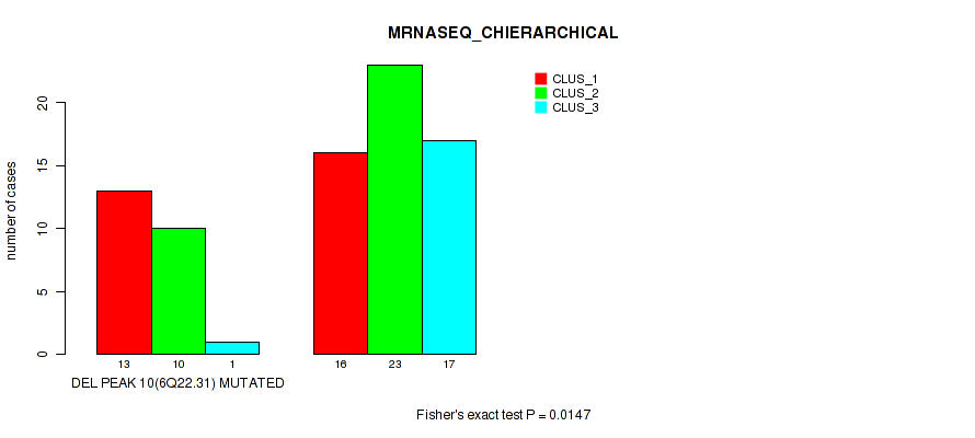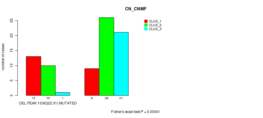 del_6q22.31 cnv correlated to 'CN_CNMF', 'MRNASEQ_CHIERARCHICAL', and 'MIRSEQ_MATURE_CHIERARCHICAL'.