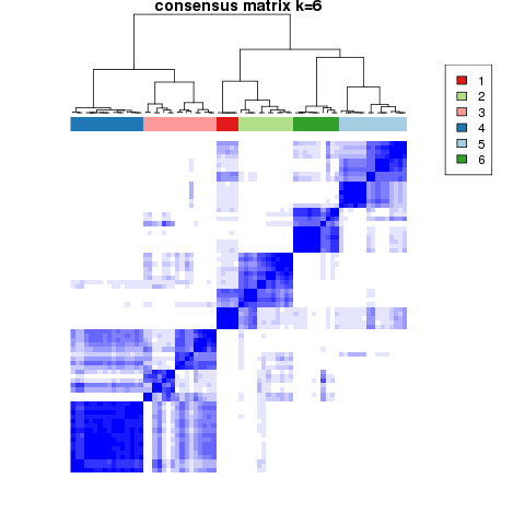 Figure 4. Get High-res Image The consensus matrix after clustering shows 6 clusters with limited overlap between clusters.