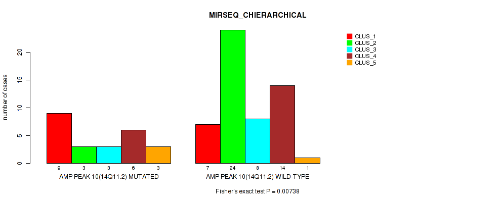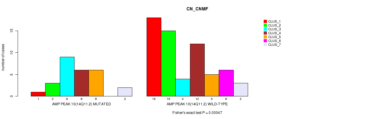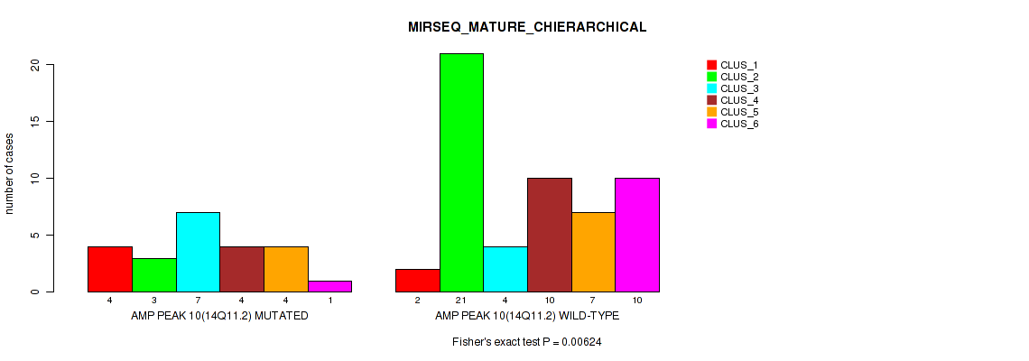 amp_14q11.2 cnv correlated to 'CN_CNMF', 'METHLYATION_CNMF', 'RPPA_CNMF', 'RPPA_CHIERARCHICAL', 'MRNASEQ_CNMF', 'MRNASEQ_CHIERARCHICAL', 'MIRSEQ_CNMF', 'MIRSEQ_CHIERARCHICAL', 'MIRSEQ_MATURE_CNMF', and 'MIRSEQ_MATURE_CHIERARCHICAL'.
