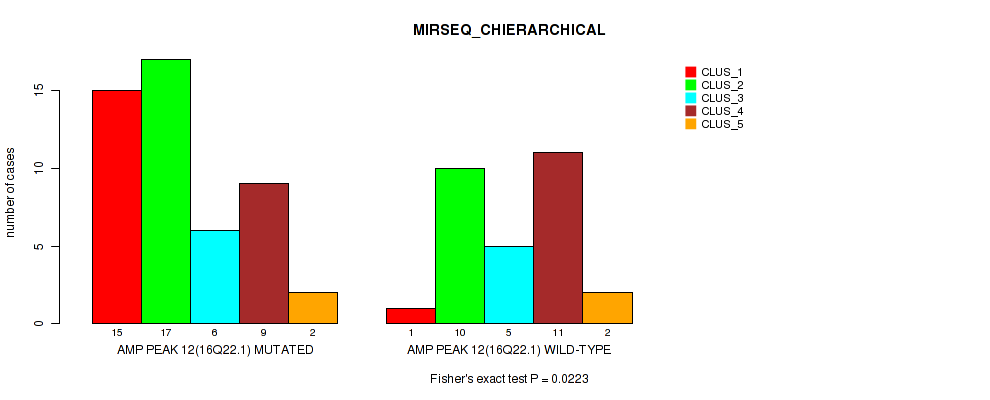 amp_16q22.1 cnv correlated to 'CN_CNMF', 'METHLYATION_CNMF', 'MRNASEQ_CNMF', 'MRNASEQ_CHIERARCHICAL', 'MIRSEQ_CHIERARCHICAL', and 'MIRSEQ_MATURE_CNMF'.