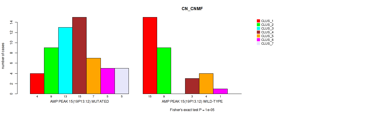 amp_19p13.12 cnv correlated to 'CN_CNMF', 'RPPA_CHIERARCHICAL', 'MRNASEQ_CNMF', and 'MRNASEQ_CHIERARCHICAL'.