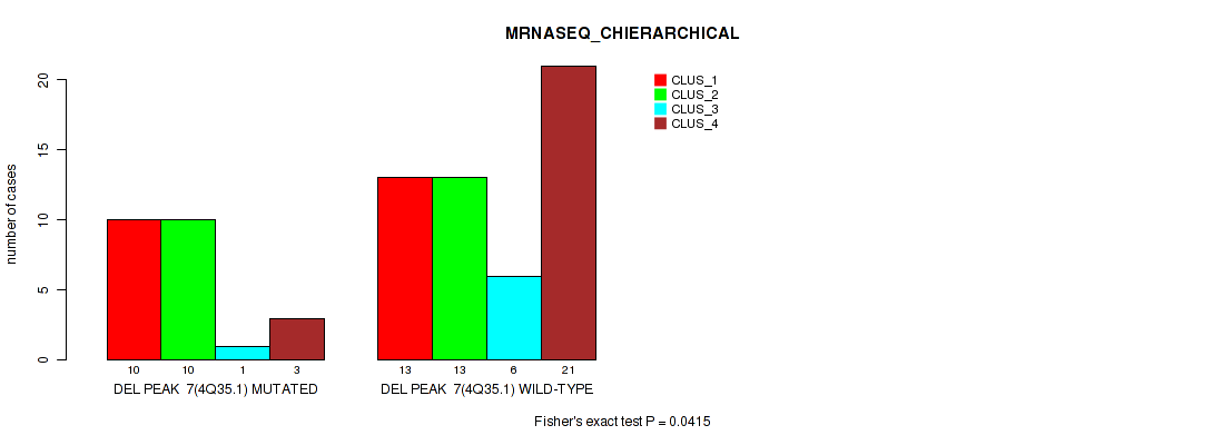 del_4q35.1 cnv correlated to 'CN_CNMF', 'METHLYATION_CNMF', 'MRNASEQ_CHIERARCHICAL', and 'MIRSEQ_MATURE_CHIERARCHICAL'.