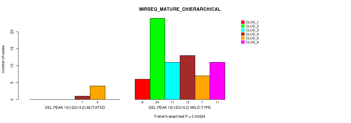 Figure S142. Get High-res Image Gene #39: 'del_16q23.1' versus Molecular Subtype #6: 'MRNASEQ_CHIERARCHICAL'