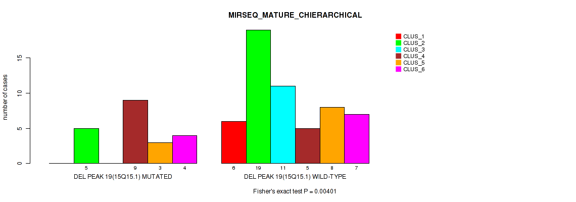 del_15q15.1 cnv correlated to 'CN_CNMF', 'MRNASEQ_CNMF', 'MIRSEQ_CHIERARCHICAL', and 'MIRSEQ_MATURE_CHIERARCHICAL'.