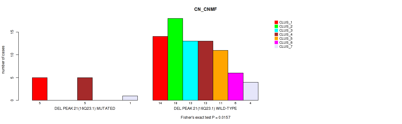 del_16q23.1 cnv correlated to 'CN_CNMF', 'MRNASEQ_CNMF', and 'MRNASEQ_CHIERARCHICAL'.