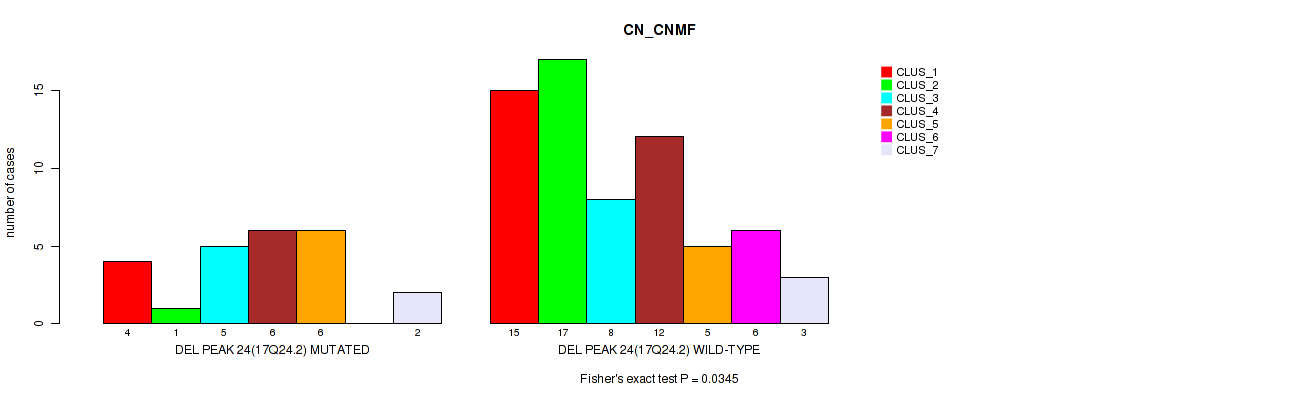 Table S152. Gene #42: 'del_17q24.2' versus Molecular Subtype #1: 'CN_CNMF'