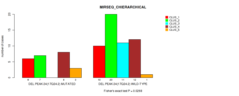 Figure S155. Get High-res Image Gene #42: 'del_17q24.2' versus Molecular Subtype #8: 'MIRSEQ_CHIERARCHICAL'
