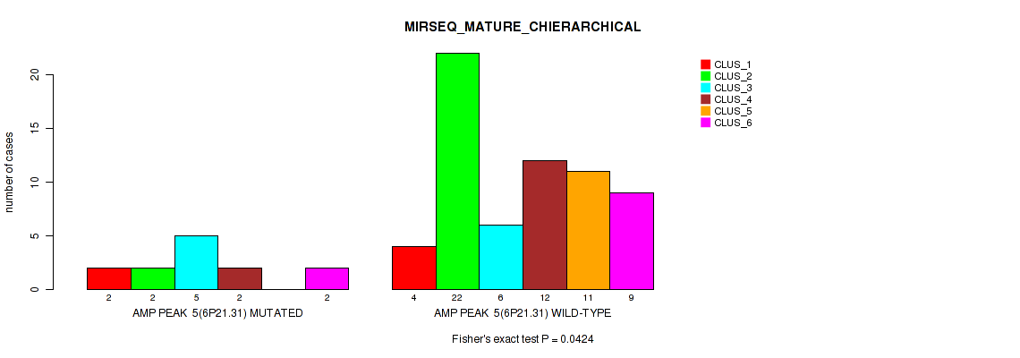 amp_6p21.31 cnv correlated to 'CN_CNMF', 'MIRSEQ_CHIERARCHICAL', 'MIRSEQ_MATURE_CNMF', and 'MIRSEQ_MATURE_CHIERARCHICAL'.