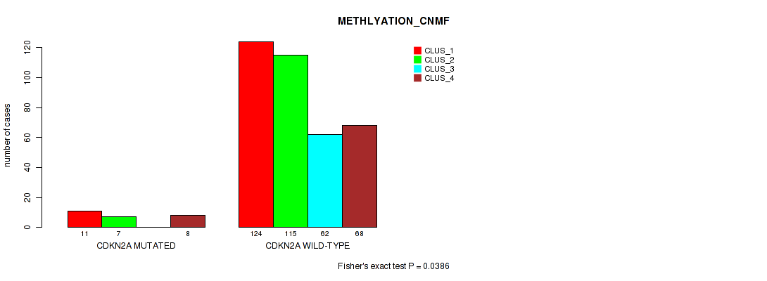 CDKN2A mutation correlated to 'MIRSEQ_CNMF' and 'MIRSEQ_MATURE_CHIERARCHICAL'.