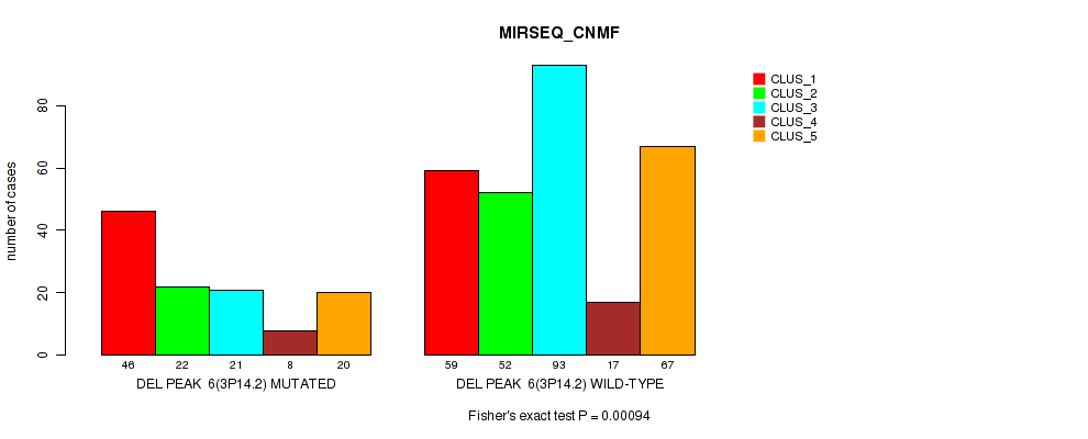 del_6q21 cnv correlated to 'CN_CNMF', 'MIRSEQ_CNMF', 'MIRSEQ_CHIERARCHICAL', and 'MIRSEQ_MATURE_CHIERARCHICAL'.