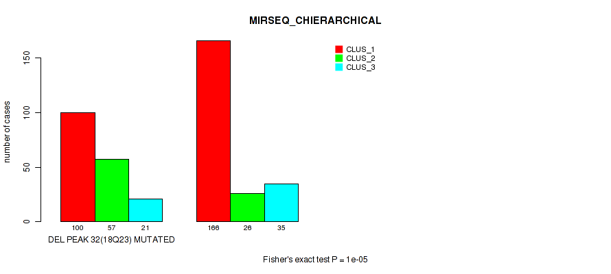 Table S313. Gene #69: 'del_18q23' versus Molecular Subtype #8: 'MIRSEQ_CHIERARCHICAL'