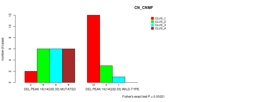 Table S16. Gene #19: 'del_14q32.33' versus Molecular Subtype #1: 'CN_CNMF'