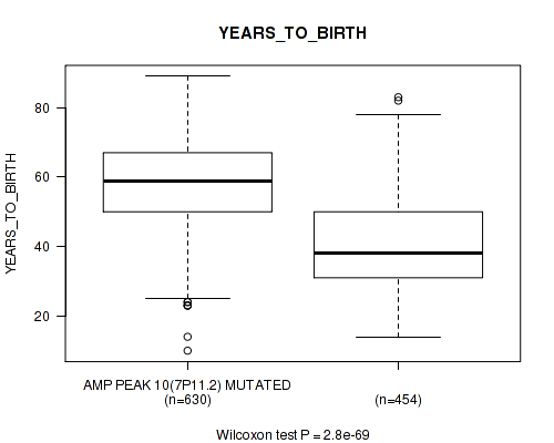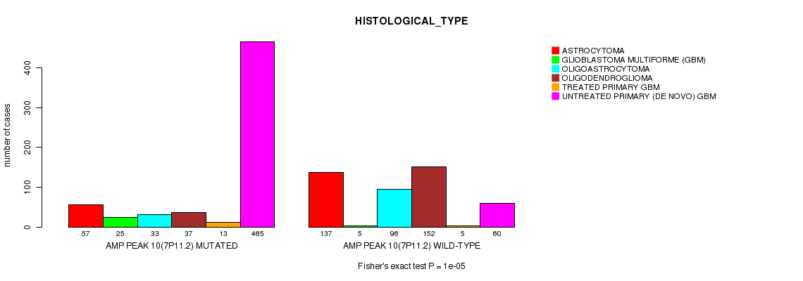 amp_7p11.2 cnv correlated to 'Time to Death', 'YEARS_TO_BIRTH', 'TUMOR_TISSUE_SITE', 'RADIATION_THERAPY', 'KARNOFSKY_PERFORMANCE_SCORE', 'HISTOLOGICAL_TYPE', 'RACE', and 'ETHNICITY'.