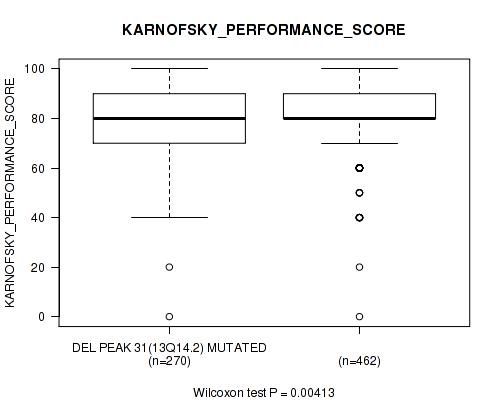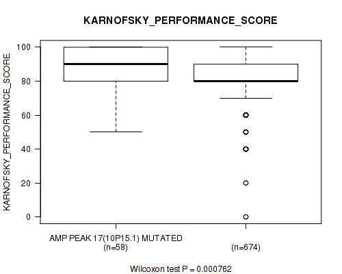 amp_13q34 cnv correlated to 'KARNOFSKY_PERFORMANCE_SCORE'.