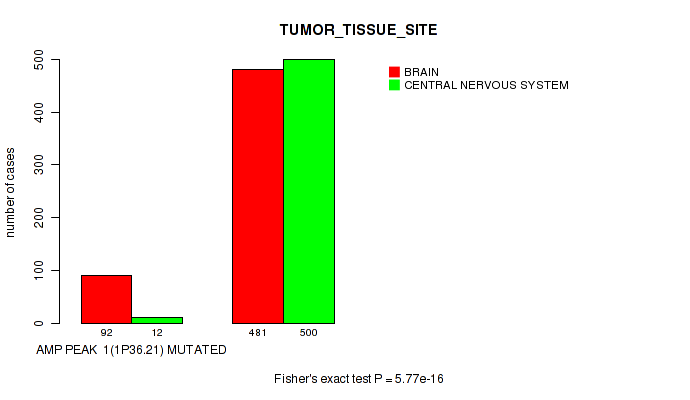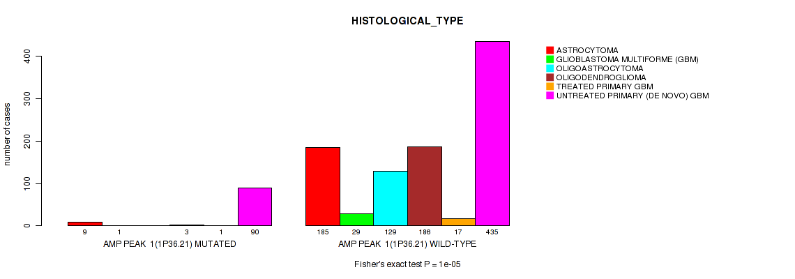 amp_1p36.21 cnv correlated to 'Time to Death', 'YEARS_TO_BIRTH', 'TUMOR_TISSUE_SITE', 'RADIATION_THERAPY', 'KARNOFSKY_PERFORMANCE_SCORE', and 'HISTOLOGICAL_TYPE'.