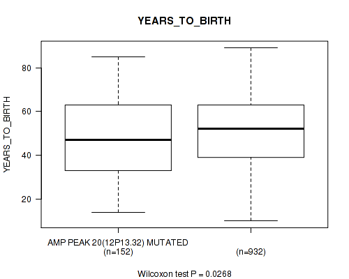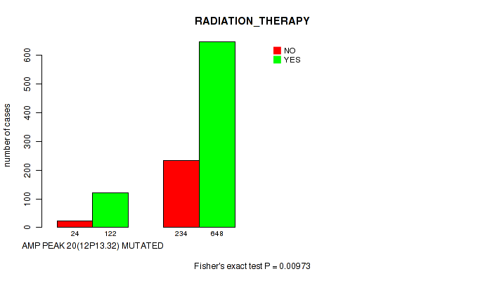 amp_12p13.32 cnv correlated to 'YEARS_TO_BIRTH' and 'RADIATION_THERAPY'.