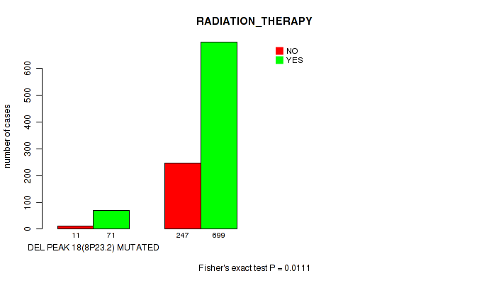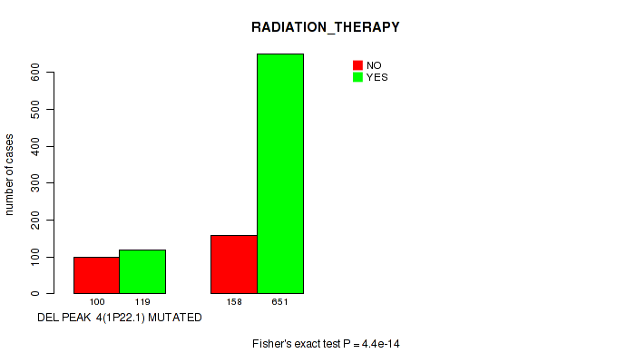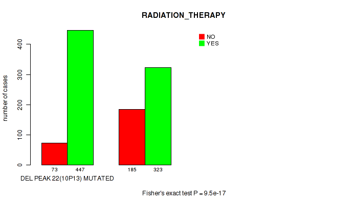 Figure S393. Get High-res Image Gene #74: 'del_22q13.32' versus Clinical Feature #5: 'RADIATION_THERAPY'