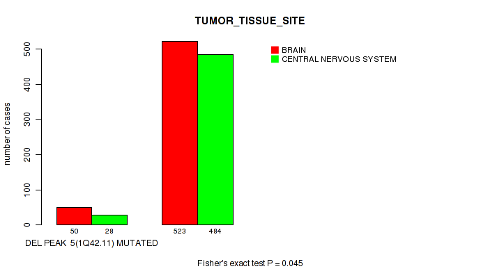 | DEL PEAK 42(19Q13.41) MUTATED | 123 | 220 |