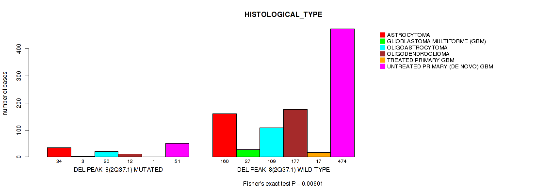 Figure S389. Get High-res Image Gene #73: 'del_19q13.43' versus Clinical Feature #7: 'HISTOLOGICAL_TYPE'