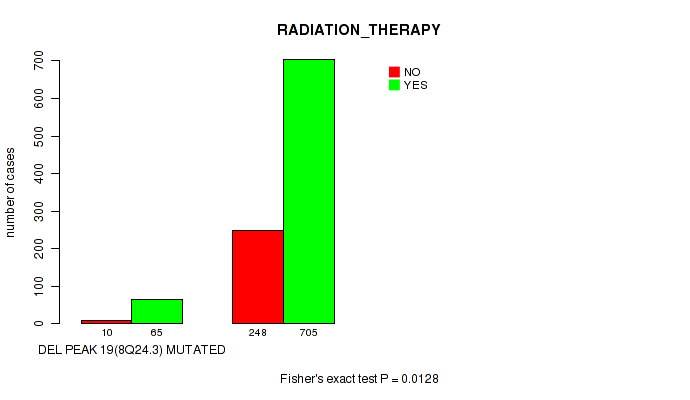 Figure S387. Get High-res Image Gene #73: 'del_19q13.43' versus Clinical Feature #5: 'RADIATION_THERAPY'