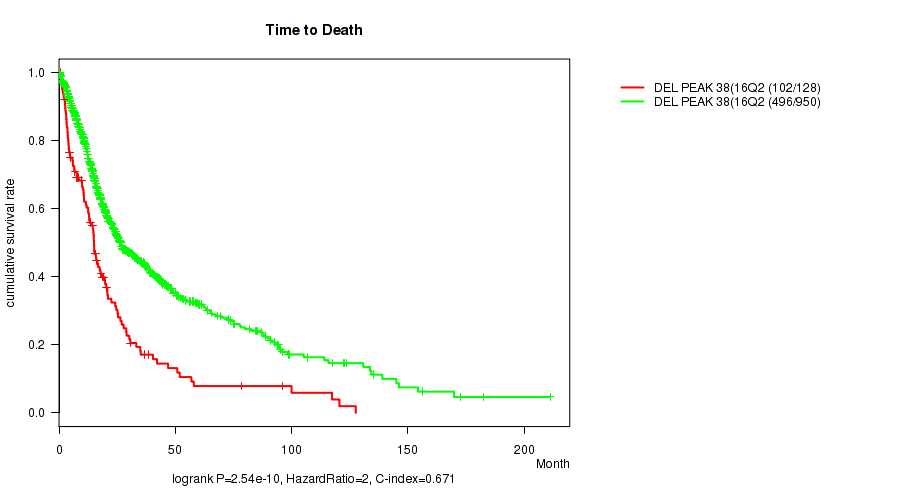 del_16p12.2 cnv correlated to 'Time to Death', 'YEARS_TO_BIRTH', 'TUMOR_TISSUE_SITE', 'RADIATION_THERAPY', and 'HISTOLOGICAL_TYPE'.