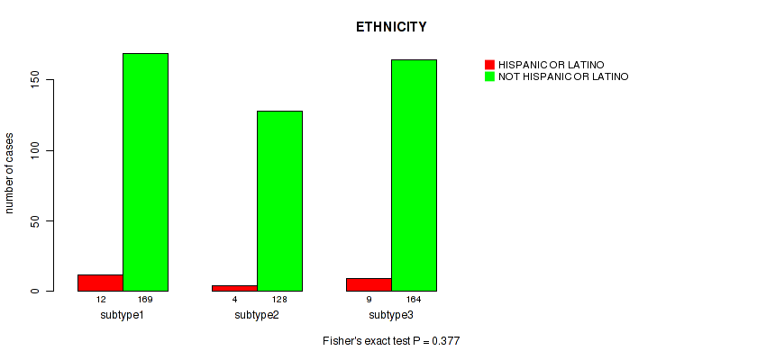 Figure S136. Get High-res Image Clustering Approach #10: 'MIRseq Mature cHierClus subtypes' versus Clinical Feature #14: 'ETHNICITY'