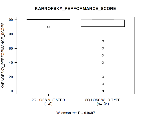 Figure S407. Get High-res Image Gene #80: '22q loss' versus Clinical Feature #9: 'KARNOFSKY_PERFORMANCE_SCORE'