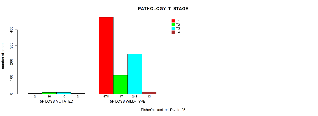 5p gain cnv correlated to 'YEARS_TO_BIRTH', 'PATHOLOGIC_STAGE', 'PATHOLOGY_T_STAGE', 'GENDER', 'HISTOLOGICAL_TYPE', and 'RACE'.