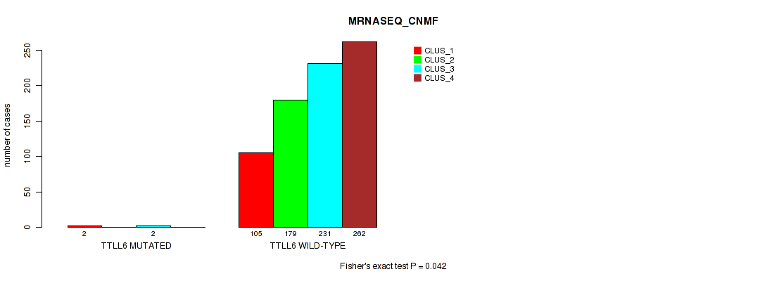 Table S642. Gene #67: 'FAM20C MUTATION STATUS' versus Molecular Subtype #11: 'MIRSEQ_MATURE_CNMF'