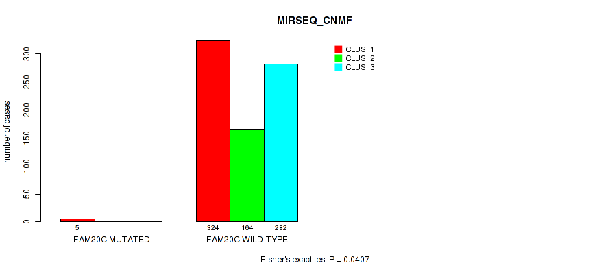 FAM20C mutation correlated to 'CN_CNMF' and 'MIRSEQ_CHIERARCHICAL'.
