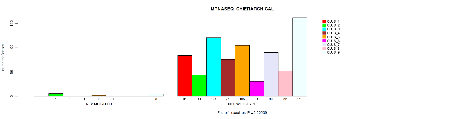 NF2 mutation correlated to 'MRNASEQ_CNMF' and 'MRNASEQ_CHIERARCHICAL'.