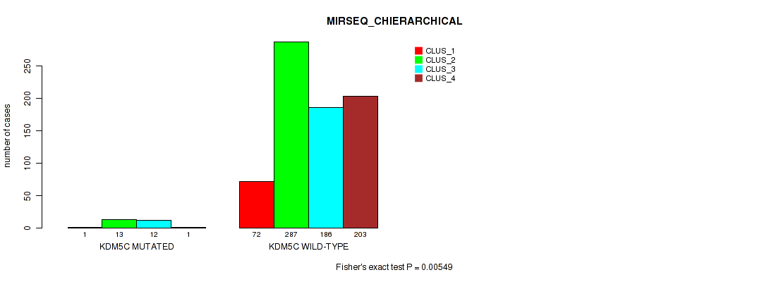 KDM5C mutation correlated to 'CN_CNMF', 'METHLYATION_CNMF', 'MRNASEQ_CNMF', 'MRNASEQ_CHIERARCHICAL', 'MIRSEQ_CNMF', and 'MIRSEQ_CHIERARCHICAL'.