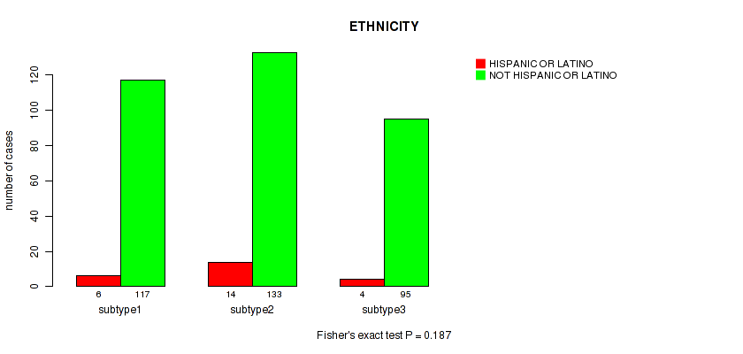 Figure S133. Get High-res Image Clustering Approach #12: 'MIRseq Mature cHierClus subtypes' versus Clinical Feature #12: 'ETHNICITY'