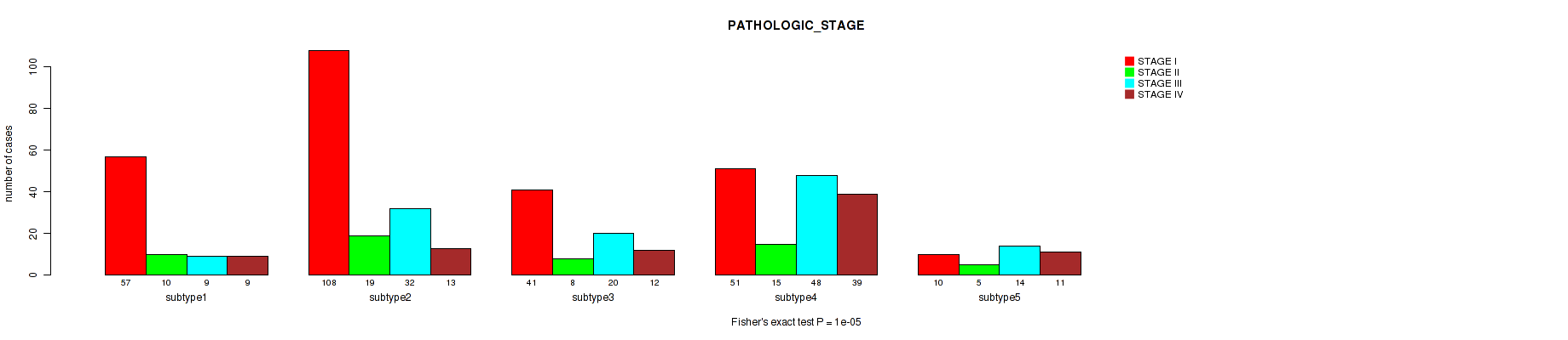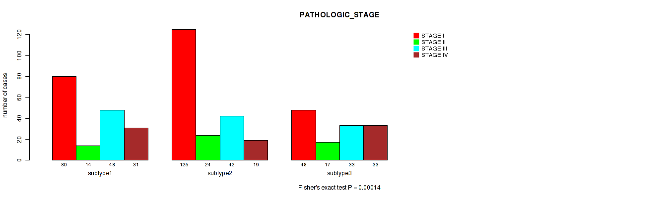 Figure S125. Get High-res Image Clustering Approach #12: 'MIRseq Mature cHierClus subtypes' versus Clinical Feature #3: 'PATHOLOGIC_STAGE'
