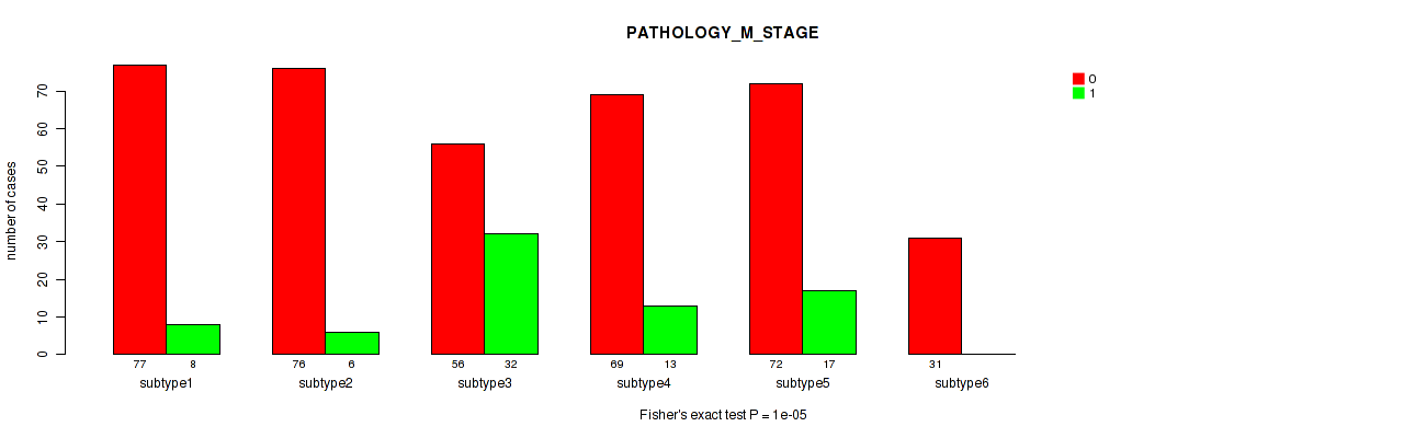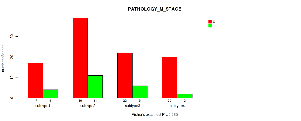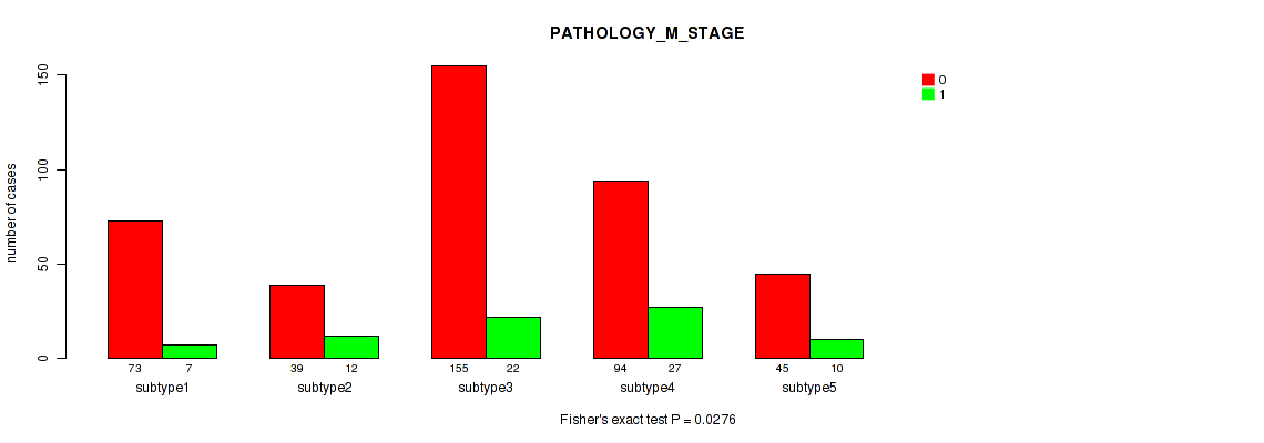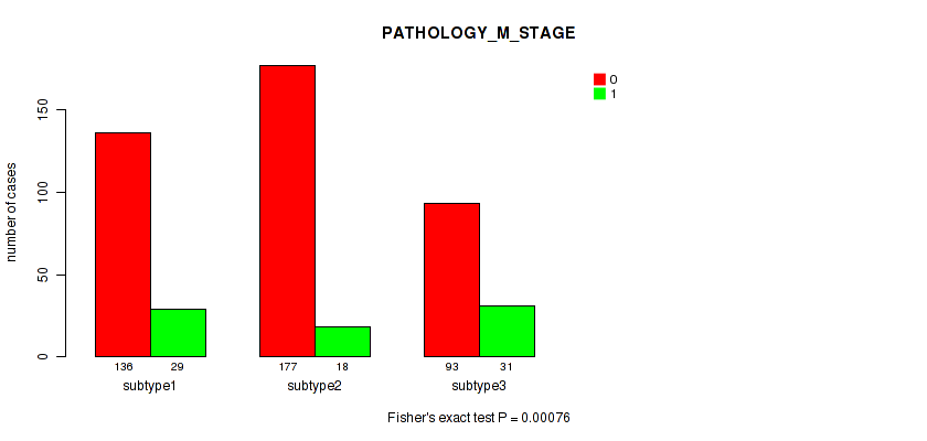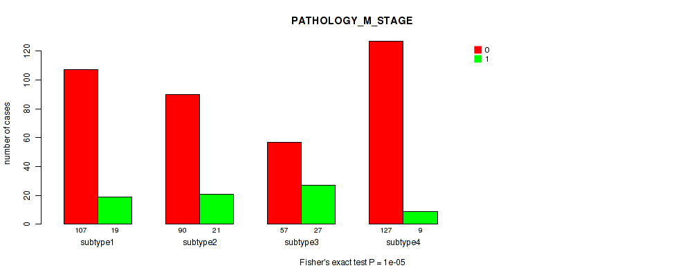 Table S140. Clustering Approach #12: 'MIRseq Mature cHierClus subtypes' versus Clinical Feature #6: 'PATHOLOGY_M_STAGE'