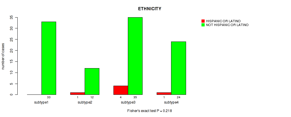 Table S133. Clustering Approach #11: 'MIRseq Mature CNMF subtypes' versus Clinical Feature #12: 'ETHNICITY'