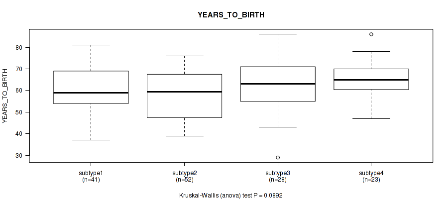 Consensus hierarchical clustering analysis on RPPA data identified 4 subtypes that correlate to 'Time to Death', 'YEARS_TO_BIRTH', 'PATHOLOGIC_STAGE', 'PATHOLOGY_T_STAGE', 'PATHOLOGY_N_STAGE', 'PATHOLOGY_M_STAGE', 'KARNOFSKY_PERFORMANCE_SCORE', and 'RACE'.