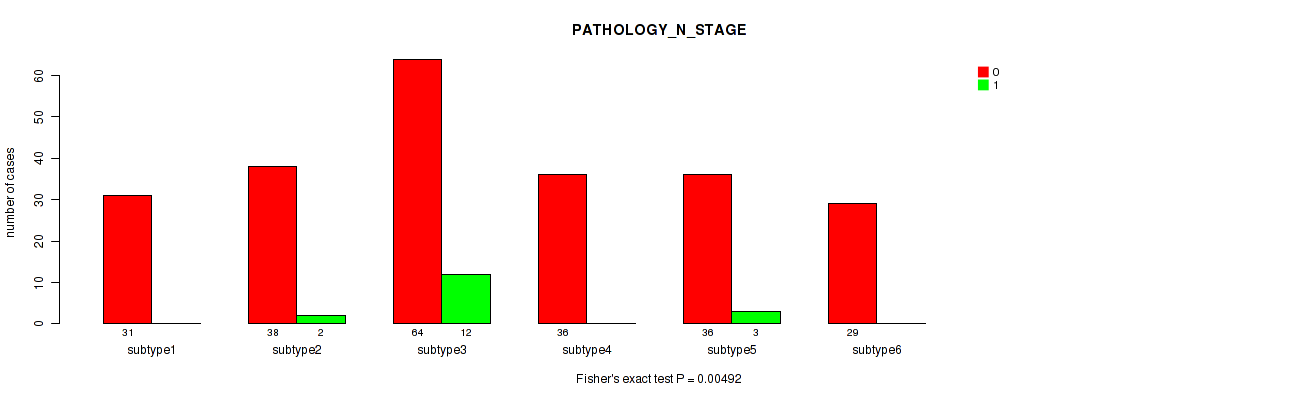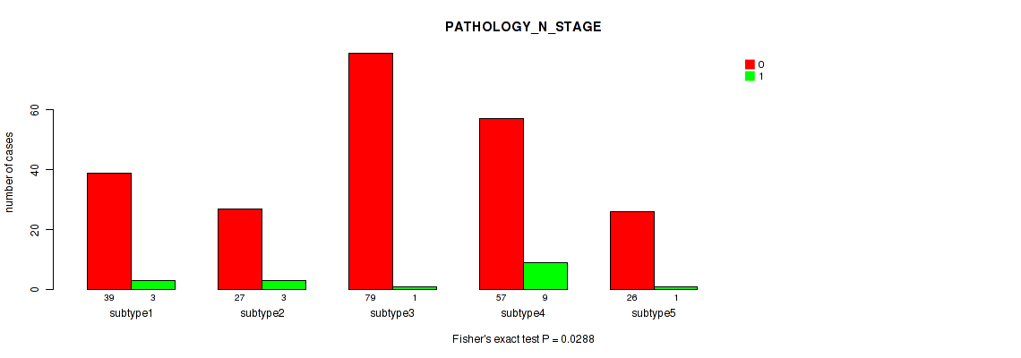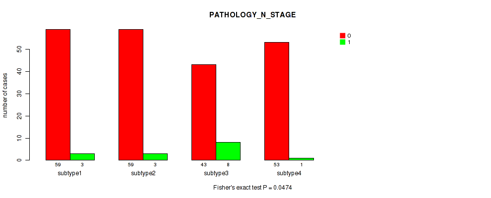 Table S139. Clustering Approach #12: 'MIRseq Mature cHierClus subtypes' versus Clinical Feature #5: 'PATHOLOGY_N_STAGE'