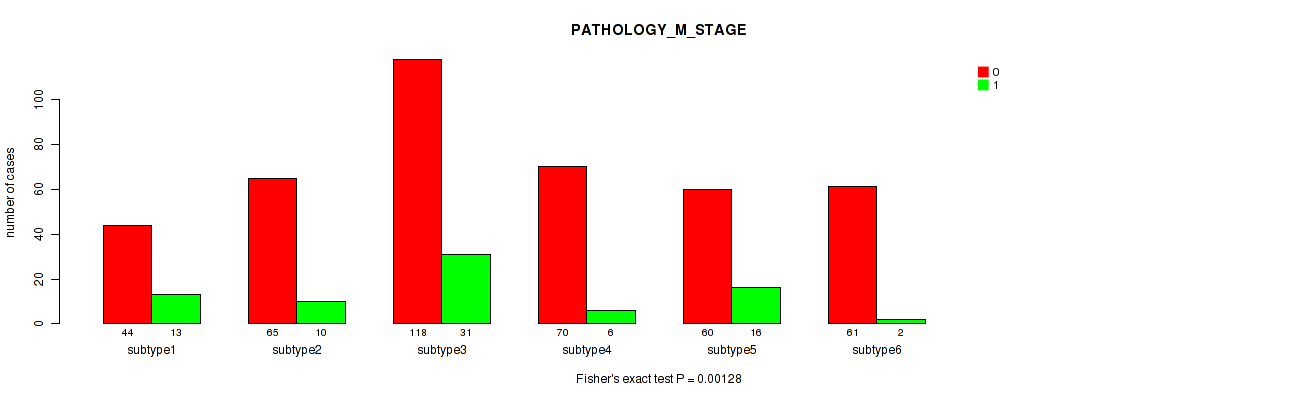 Figure S128. Get High-res Image Clustering Approach #12: 'MIRseq Mature cHierClus subtypes' versus Clinical Feature #6: 'PATHOLOGY_M_STAGE'