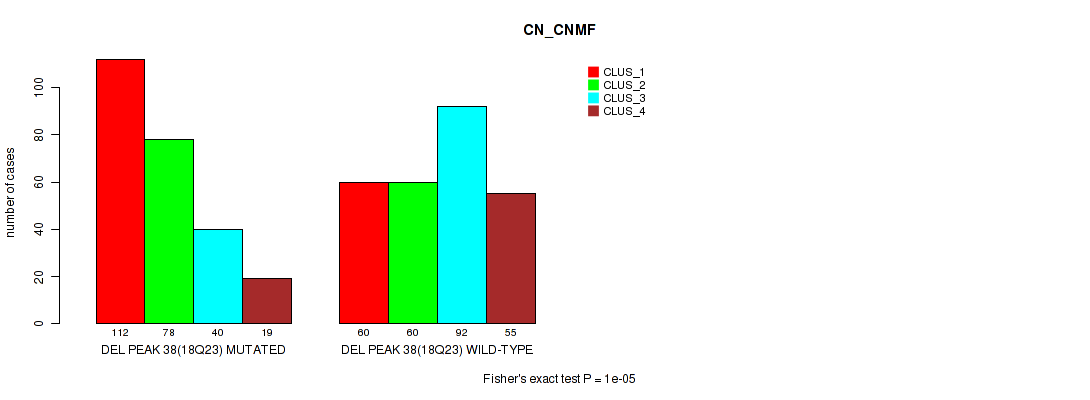 del_18q23 cnv correlated to 'MRNA_CNMF', 'MRNA_CHIERARCHICAL', 'CN_CNMF', 'RPPA_CNMF', 'RPPA_CHIERARCHICAL', 'MRNASEQ_CNMF', 'MRNASEQ_CHIERARCHICAL', and 'MIRSEQ_CNMF'.